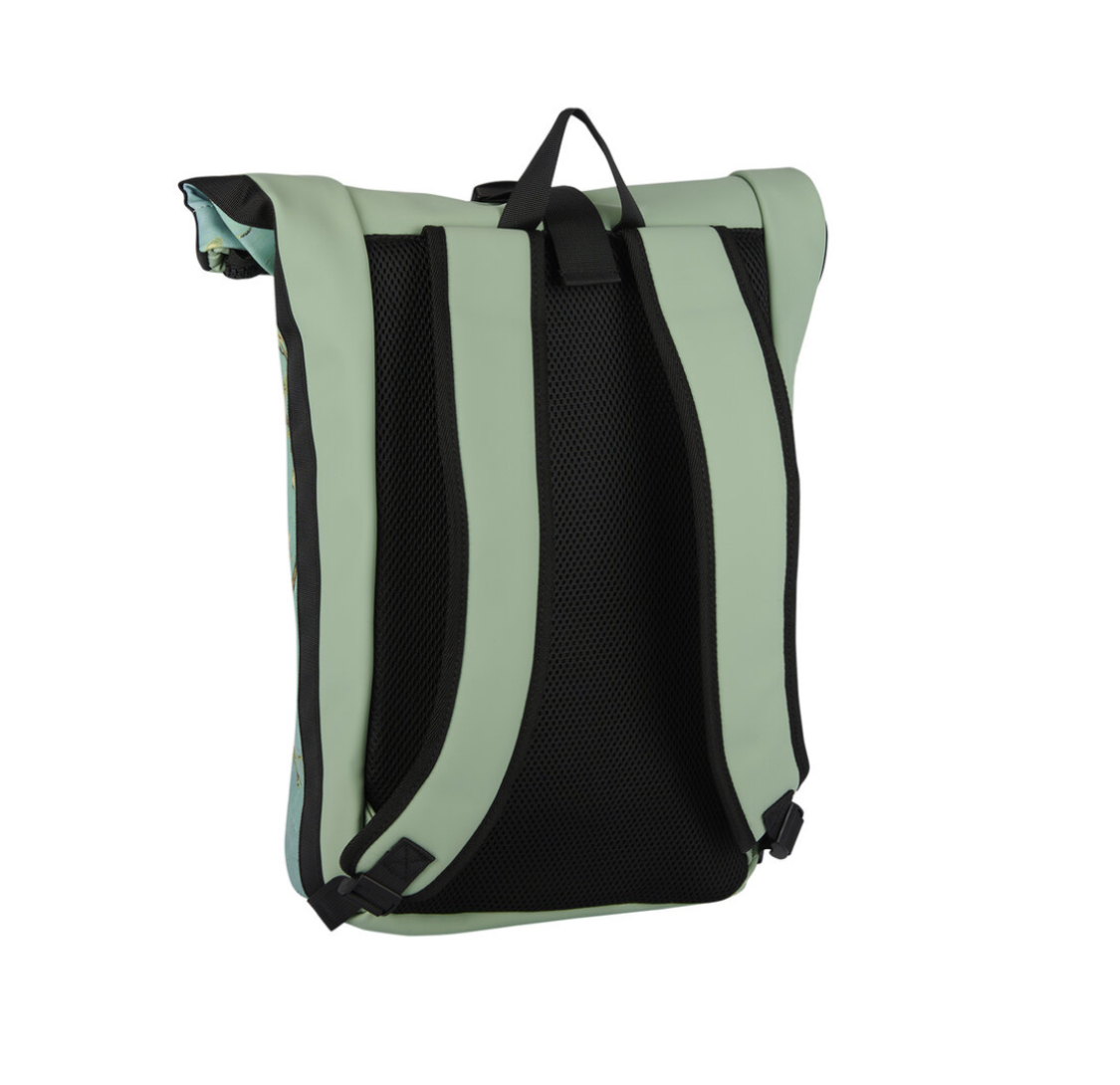 Εκτός από το ότι αυτό το μοντέρνο αδιάβροχο σακίδιο φαίνεται δροσερό, έχει επίσης πολύ χώρο αποθήκευσης και είναι εξαιρετικά άνετο. Άνετο λόγω της ελαφριάς και γεμισμένης πίσω επιφάνειας και των ρυθμιζόμενων ιμάντων ώμου με επένδυση. Άφθονος αποθηκευτικός χώρος χάρη στην ευρύχωρη κύρια θήκη που μπορεί εύκολα να μεγεθυνθεί ή να μειωθεί από το τμήμα roll-up στο επάνω μέρος. Αυτό σας επιτρέπει να δημιουργήσετε έως και 10 cm περισσότερο χώρο. Η κύρια θήκη μπορεί να κλείσει με ένα γερό φερμουάρ και ένα κλείσιμο με ολίσθηση/κλικ. Στην κύρια θήκη υπάρχει μια επιπλέον τσέπη με φερμουάρ και μια θήκη για φορητό υπολογιστή με επένδυση (36×27 cm). Υπάρχει επίσης μια επιπλέον τσέπη με φερμουάρ στο μπροστινό μέρος του σακιδίου, κατάλληλη για μικροαντικείμενα που μπορείτε να φτάσετε εύκολα. Η στιβαρή λαβή διευκολύνει το σήκωμα και το κρέμασμα της τσάντας. Μοντέρνα λειτουργικό!