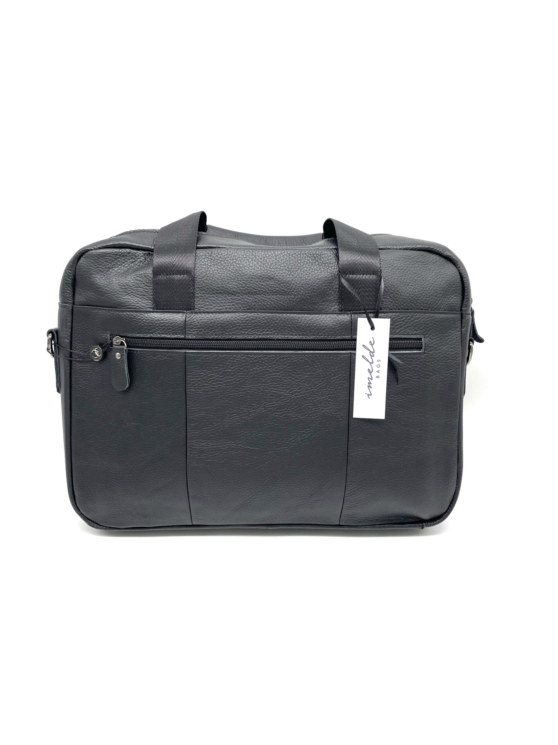 Άνοιγμα με φερμουάρ. Ενιαίος εσωτερικός χώρος με μία θήκη για λάπτοπ και δύο θήκες. Ένα τσεπάκι με φερμουάρ στο μπροστινό μέρος της. Μία θήκη με κούμπωμα. Ένα τσεπάκι με φερμουάρ στο πίσω μέρος της. Διαθέτει ιμάντα για να φορεθεί και στον ώμο. Κατασκευασμένη εξολοκλήρου από γνήσιο δέρμα.