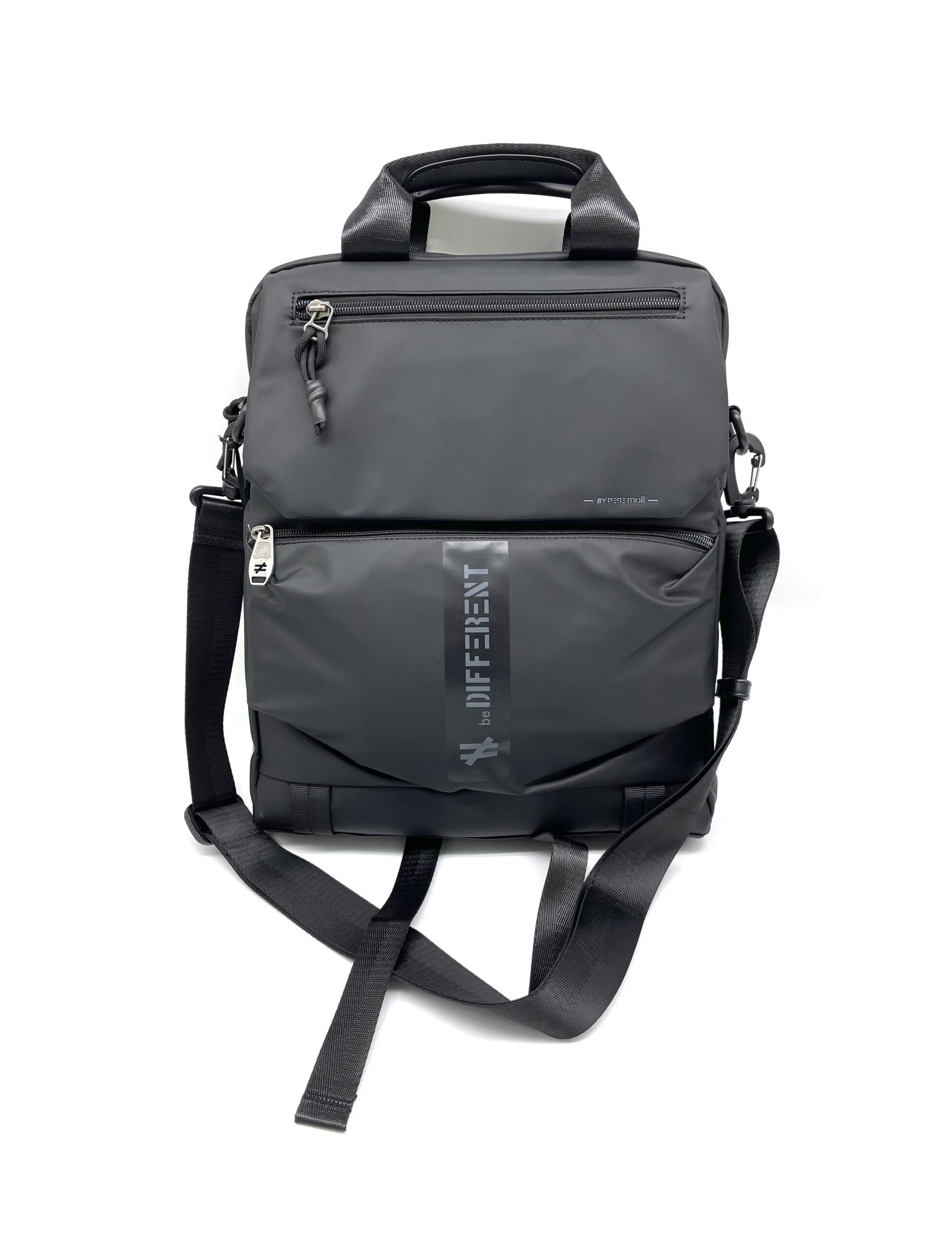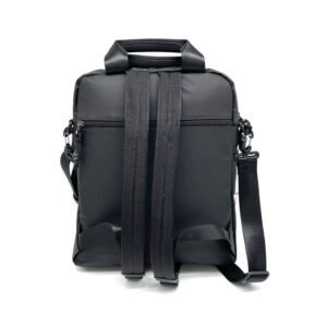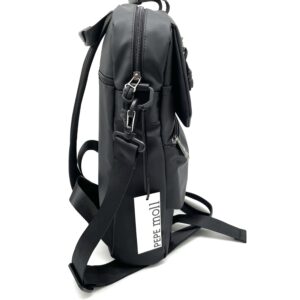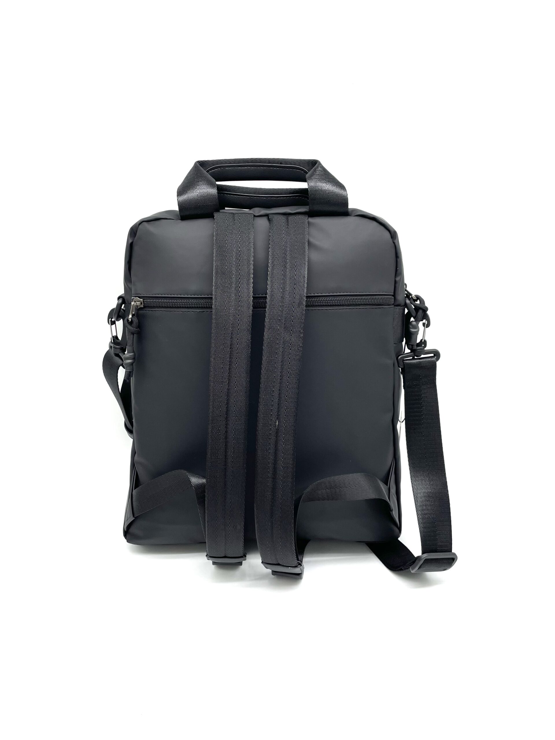 Άνοιγμα με φερμουάρ. Ενιαίος εσωτερικός χώρος με ένα τσεπάκι με φερμουάρ, μία θήκη και θήκη για λάπτοπ. Δύο θήκες με φερμουάρ στο μπροστινό μέρος της και μία θήκη στο πίσω μέρος της μπορεί να κρατηθεί και ως τσάντα χειρός και ως τσάντα ώμου και ως σακίδιο πλάτης. Κατασκευασμένη εξολοκλήρου από ύφασμα.