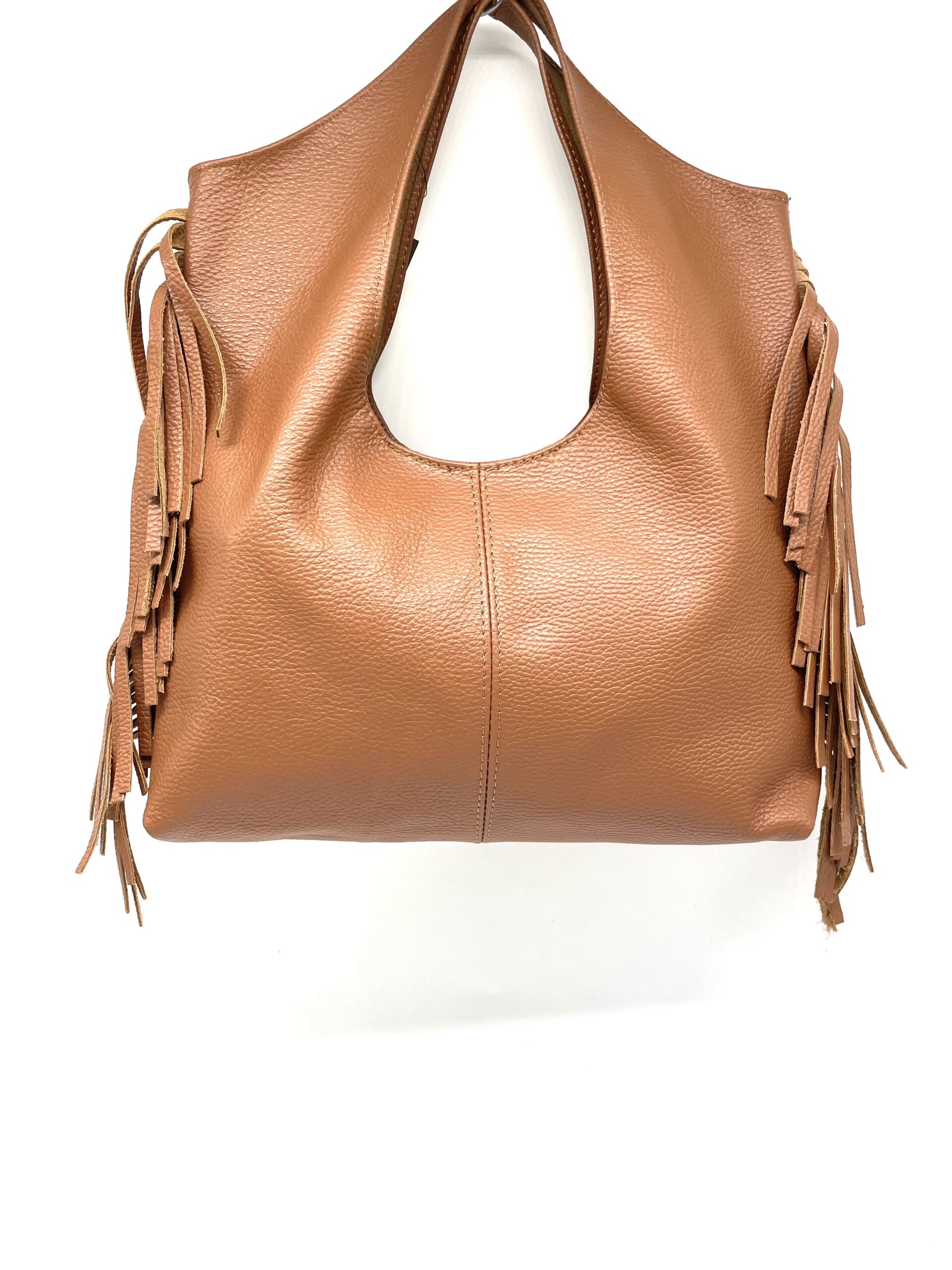 Τσάντα Ώμου Με Κρόσια S7340/CO Γνήσιο Δέρμα Ταμπά