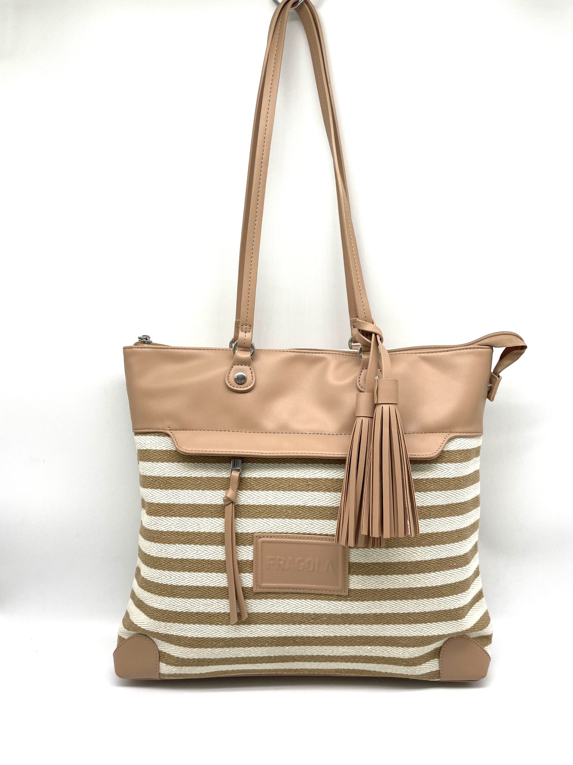 Τσάντα Ώμου Ύφασμα FE210 FRAGOLA Beige Lines